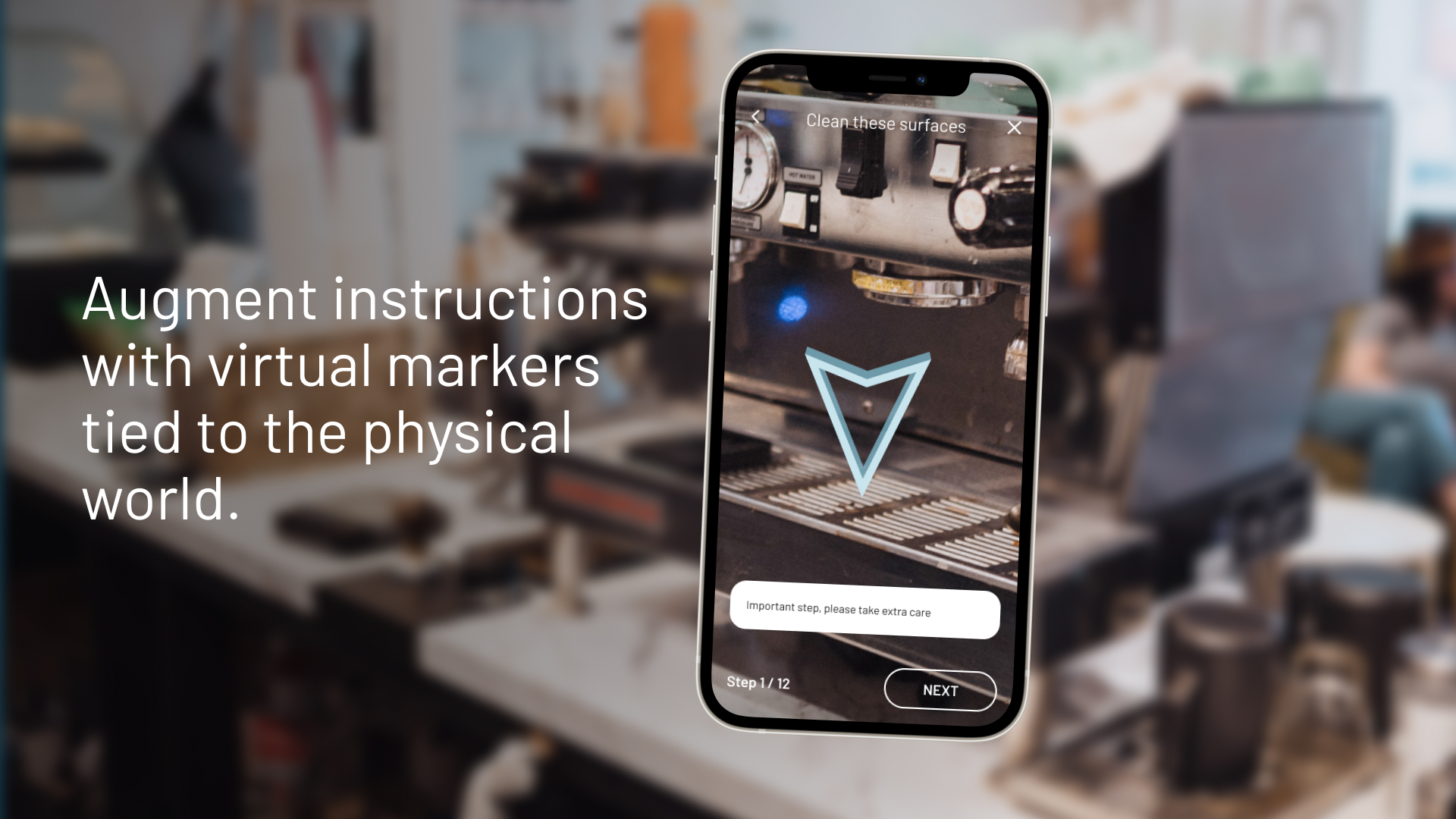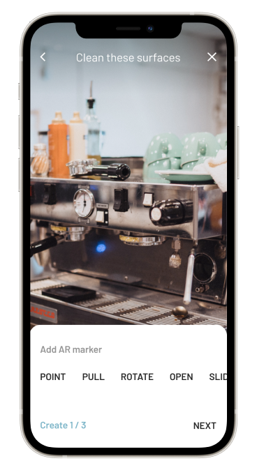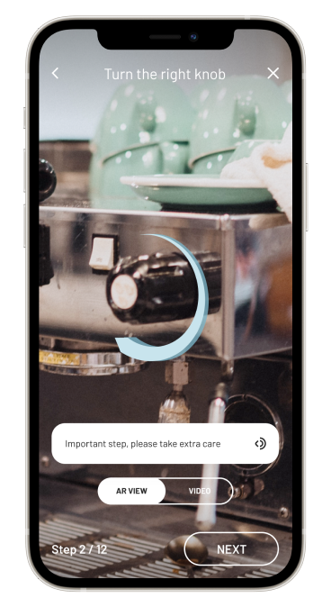 Get guidance as you perform your task through short and precise steps. Virtual markers in the real world guides you together with notes, sound, and video clips.